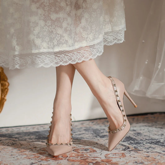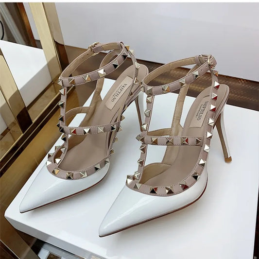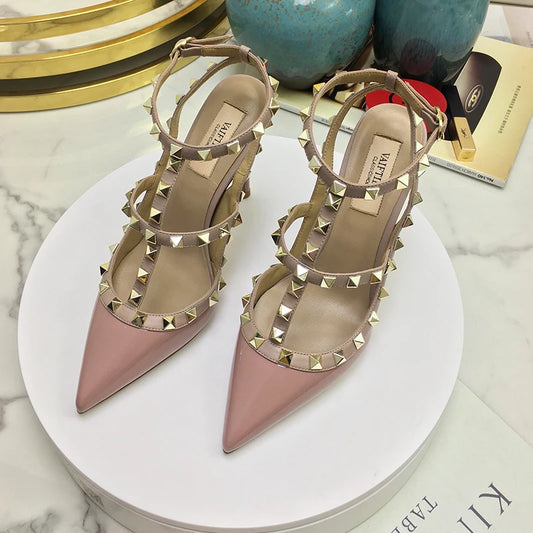 2024 Fashion Brand Summer High Quality Women 's Sandals Classic Rivet Pointed High Heels Sexy Luxury Pumps Wedding Party Shoes